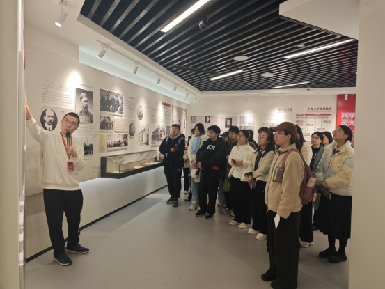 “史馆探秘”环节中,宣讲团的讲解员们化身 “历史引路人”,带领大家走进崭新的齐鲁医学史馆,开启一场跨越时空的医学文脉之旅。馆内的珍贵史料、老物件与图文展板相映成趣,讲解员们以生动叙事串联起齐鲁医学的百年发展脉络 —— 从初创时的薪火微光,到炮火中的砥砺前行,再到新时代的薪火相传。