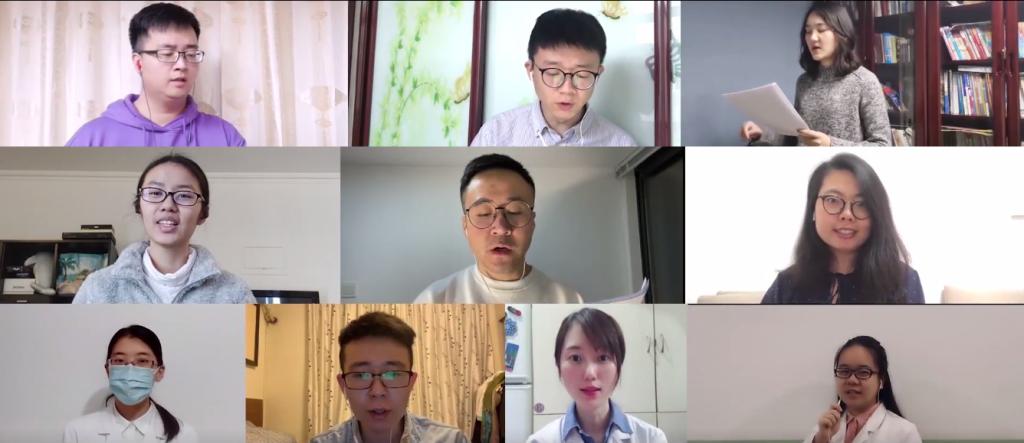 2020这个不平凡的春天,突如其来的疫情席卷神州,全国各地的医护人员奔赴湖北,冲上前线。在这些抗疫英雄的身后,还有无数白衣天使坚守在本职岗位,怀揣着医者仁心,牵挂着战“疫”一线。近日,一支由北京大学第一医院医生、山东大学医学校友、山东大学学生Dr.Cats合唱团创始人马永琛策划,山东大学学生Dr.Cats合唱团的5任团长及6届骨干成员积极参与,来自全国十余所高校、医院的医务工作者和医学生自发组成的特殊合唱团——“医·声”虚拟合唱团,选择通过线上和声的形式,唱响隔不断的爱,传递割不断的情。