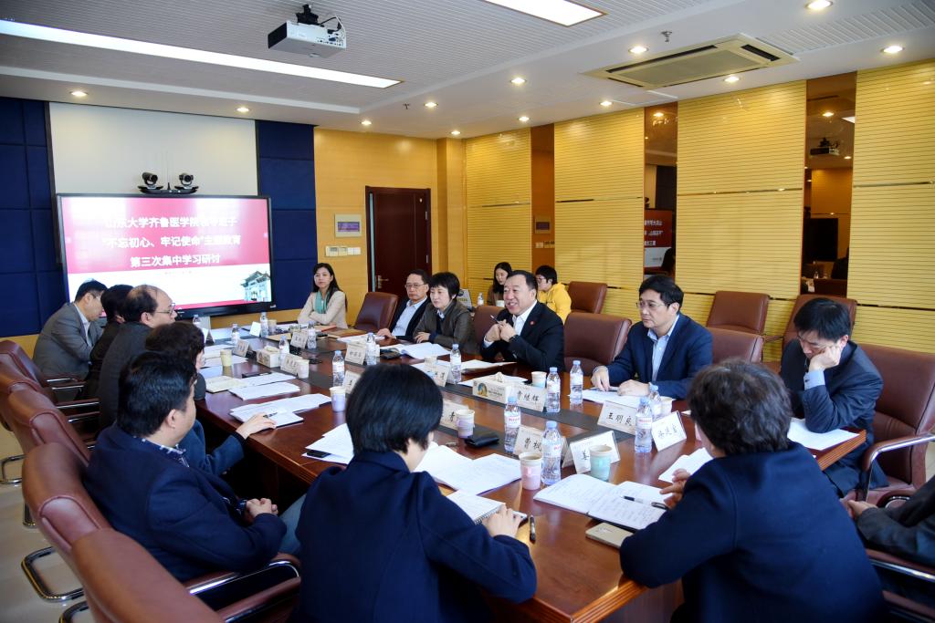 党工委副书记王炳学在领学研讨时围绕主题谈了四方面的学习体会。一是通过开展主题教育,认清使命担当。为中国人民谋幸福,为中华民族谋复兴,是中国共产党人的初心与使命;为天下储人才,为国家图富强,是山东大学的初心与使命;培育医学精英,护佑人类健康,是齐鲁医学的初心与使命。二是实现初心与使命,关键在于加强党的领导。站在新时代,在创建世界一流大学的征程中,必须旗帜鲜明坚持党对学校工作的全面领导,保证党的领导在“双一流”建设中的领航地位。三是加强党的领导,需要强基固本,充分发挥基层党委引领和支撑保障作用,党支部的战斗堡垒作用和党员的先锋模范作用。四是做到强基固本,破解党建与业务工作“两张皮”。思想层面要“破”,破除旧的观点;实践层面要“解”,解决老的问题;制度层面要“立”,建立新的制度。