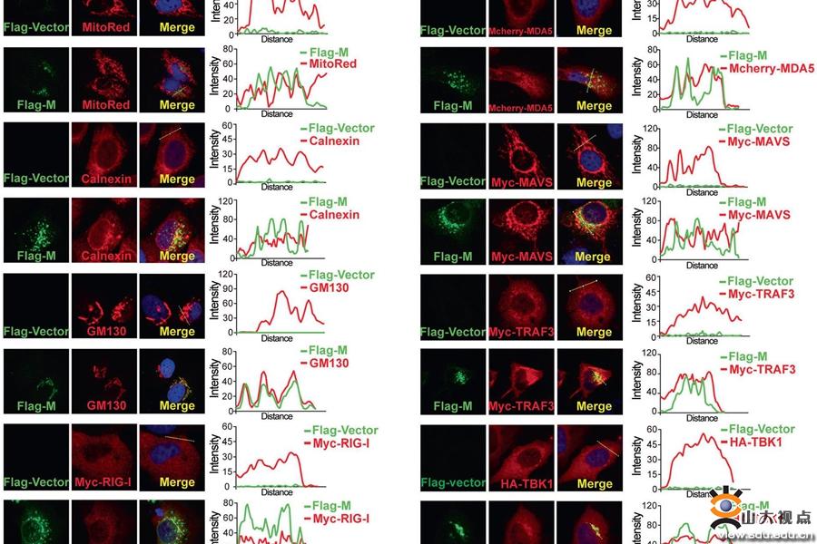 近日,高等医学研究院王培会教授课题组和基础医学院高成江教授课题组在新冠病毒逃逸人类抗病毒免疫方面取得新进展,在Nature旗下期刊Signal Transduction and Targeted Therapy杂志(IF=13.5)上发表了题为“Severe acute respiratory syndrome coronavirus 2 (SARS-CoV-2) membrane (M) protein inhibits type I and III interferon production by targeting RIG-I/MDA-5 signaling”的研究论文。山东大学基础医学院郑义博士和高等医学院研究院庄梦玮为共同第一作者,高等医学研究院王培会教授和基础医学院高成江教授为共同通讯作者。山东大学为该论文的第一单位。