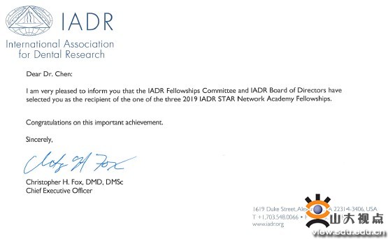 6月21日,在第97届国际牙科研究协会年会及展览会(IADR)上,山东大学口腔医学院(口腔医院)博士后陈荟从来自全球5000多名参会代表中脱颖而出,获得IADR科研新星交流项目资助(IADR NEW STAR NETWORK FELLOWSHIP),将在加拿大英属哥伦比亚大学口腔睡眠医学实验室开展为期三周的学术交流活动。