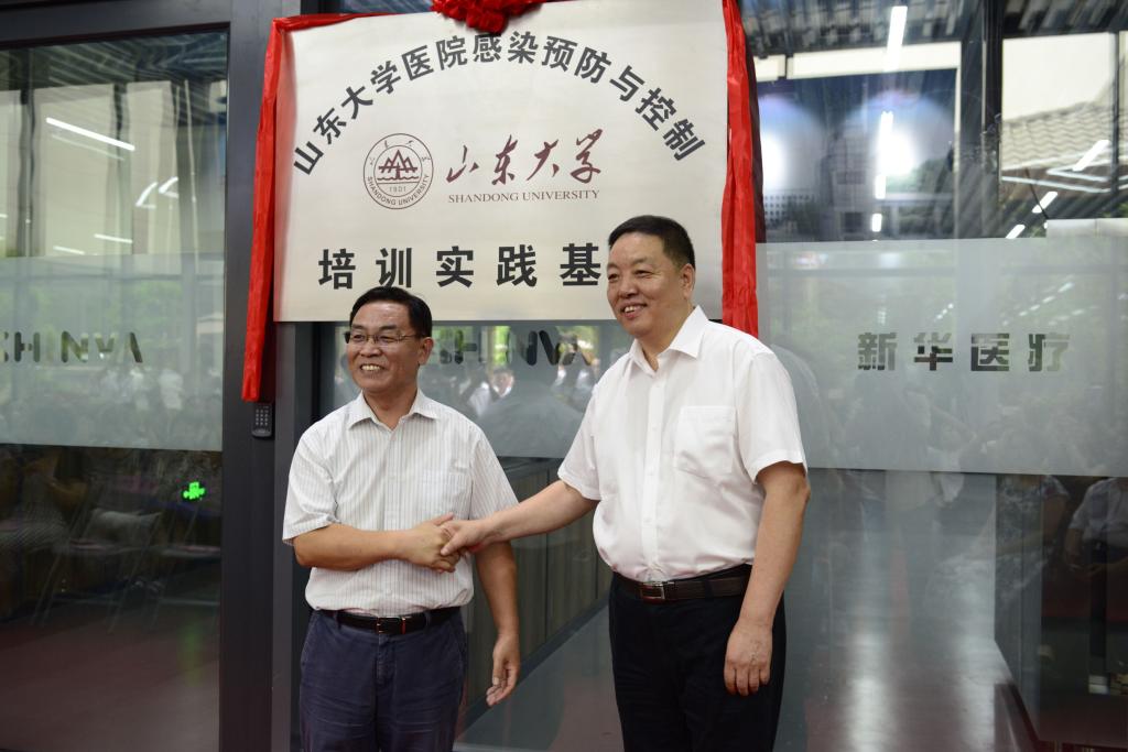 7月10日,山东大学医院感染预防与控制实践培训基地在山东新华医疗器械股份有限公司隆重揭牌。揭开了医药卫生管理学院加强校企合作、控制医院感染、培养感控人才、服务健康山东的新篇章。山东大学齐鲁医学院党工委书记侯俊平、山东新华医疗器械股份有限公司总经理赵勇,国家卫生标准委员会医院感染控制标准专业委员会委员兼秘书长巩玉秀、中国卫生监督协会消毒与感染控制专业委员会副主任委员袁青春、山东预防医学会医院感染控制分会主任委员崔树玉、原中华护理学会消毒供应专业委员会主任委员任伍爱等参加了本次活动。