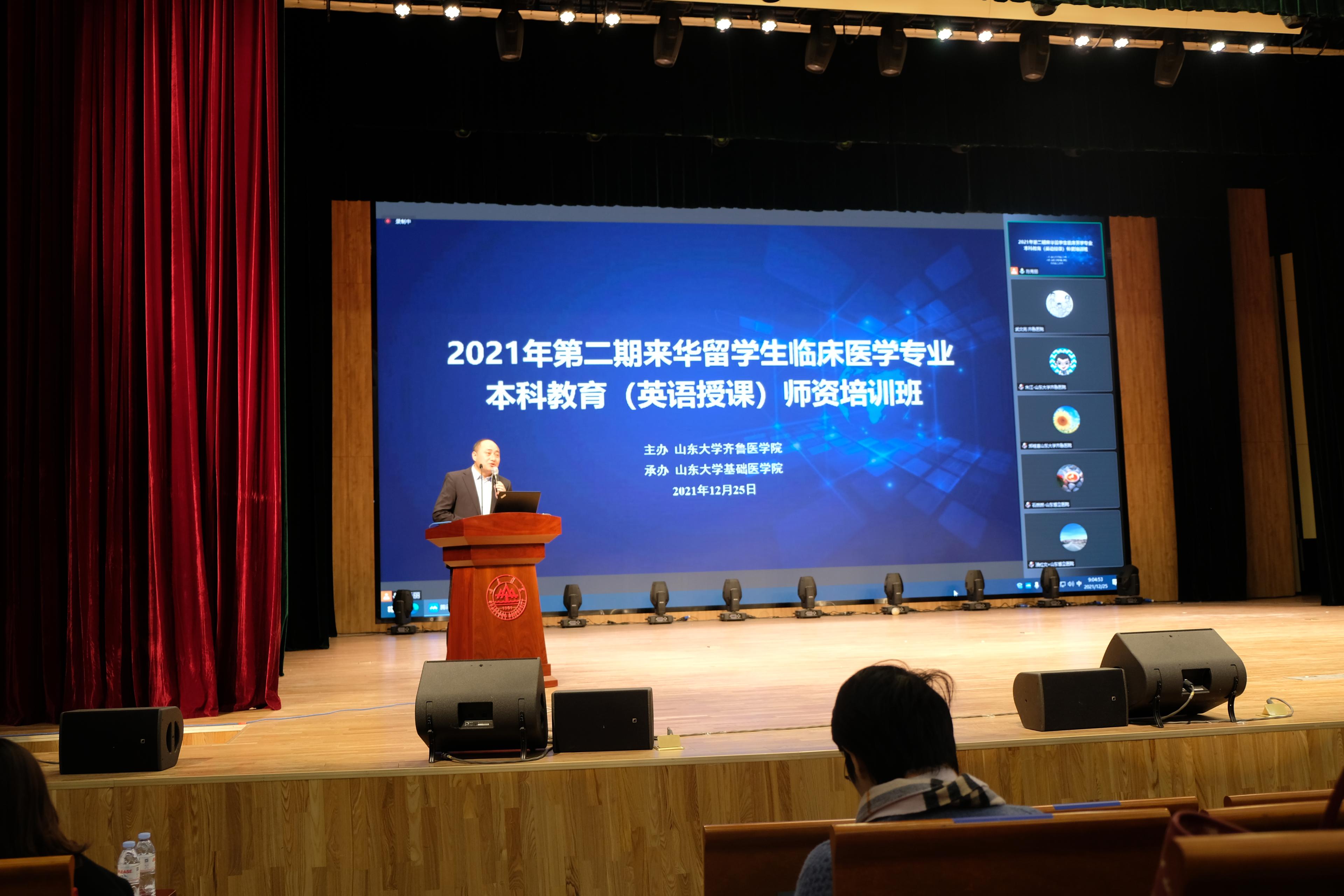 12月25日,由齐鲁医学院本科教育管理办公室、教师发展中心主办,基础医学院承办的第二期来华留学生临床医学专业本科教育(英文授课)师资培训班在趵突泉校区举行。