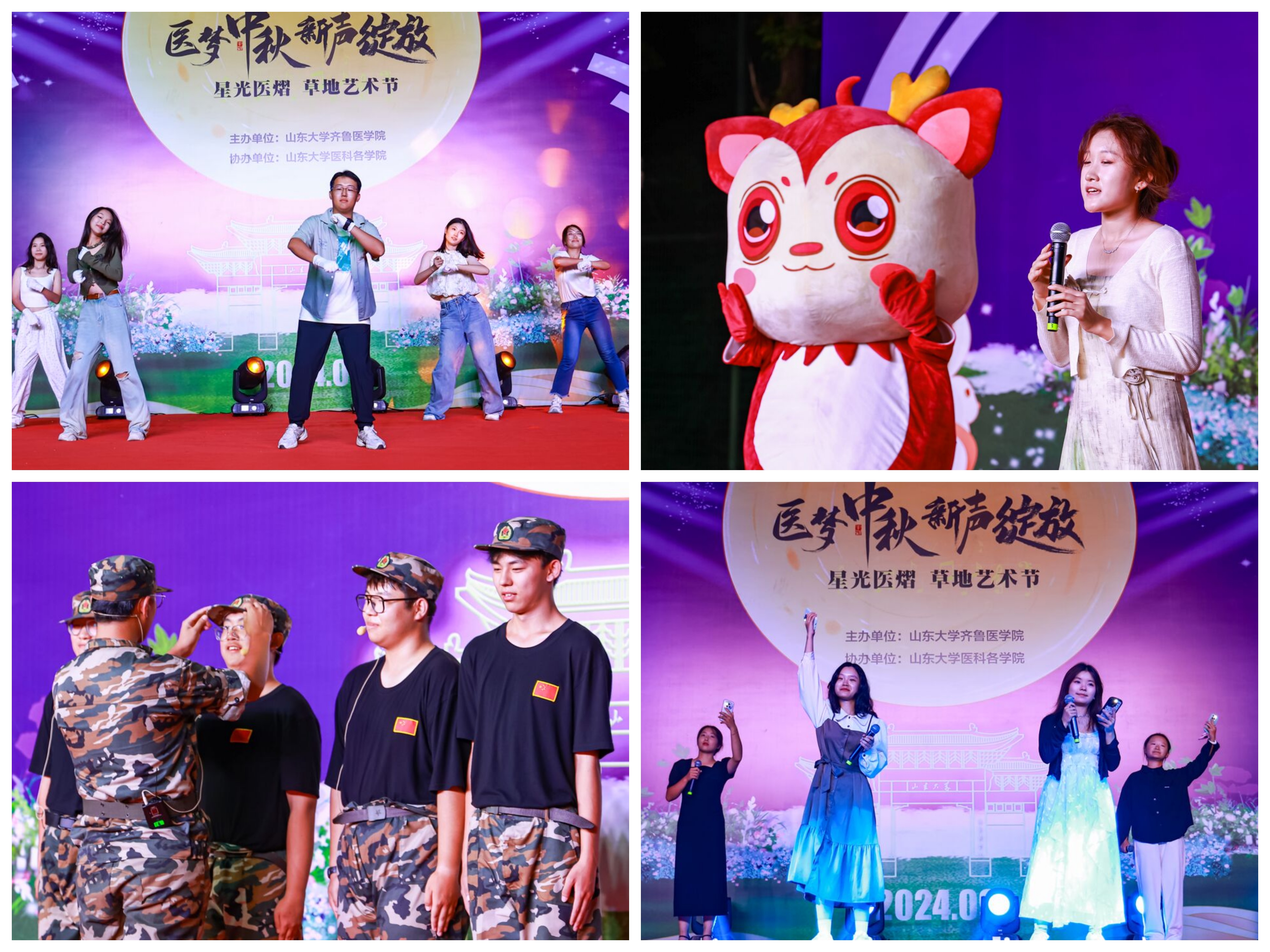 学在山大,快乐成长。在月色的笼罩下,在荧光棒的星海里,齐鲁医学院“医梦中秋,新声绽放”星光医熠草地艺术节圆满落下帷幕。丰富多样的表演形式,热烈浓厚的军训氛围,展示了2024级齐鲁医学新生的蓬勃朝气和青春活力,为广大师生、教官留下了一段难忘的中秋记忆。