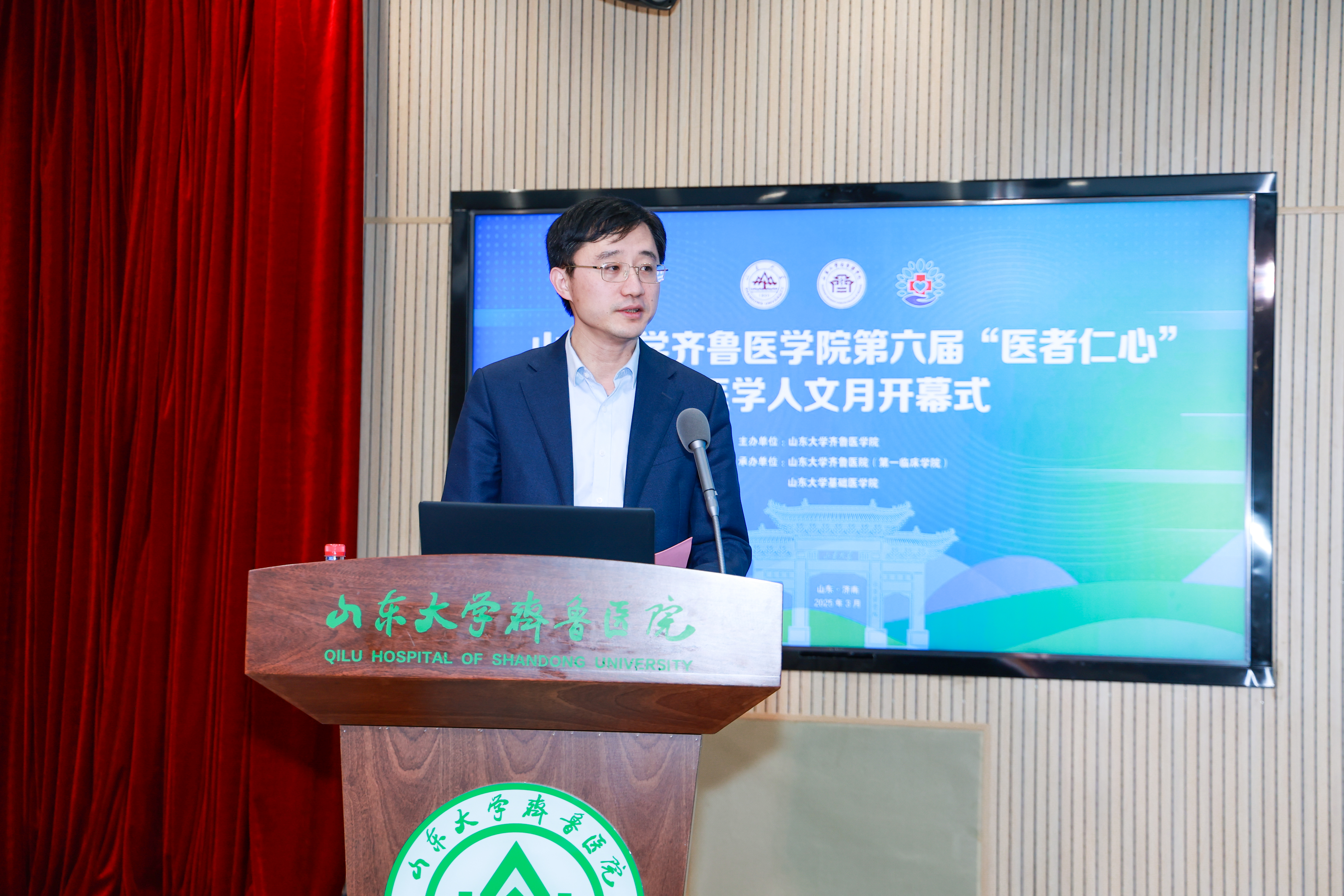明湖春柳拂堤岸,趵突腾空映翠微。3月30日下午,由齐鲁医学院主办,齐鲁医院(第一临床学院)和基础医学院承办的第六届“医者仁心”医学人文月开幕式在齐鲁医院齐鲁楼5D会议室成功举办。齐鲁医学院党工委书记、齐鲁医院(第一临床学院)党委书记陈鑫为开幕式致辞,全国人大代表、山东大学特聘教授杨其峰做专题报告。开幕式由齐鲁医院(第一临床学院)党委副书记连雪洪主持。