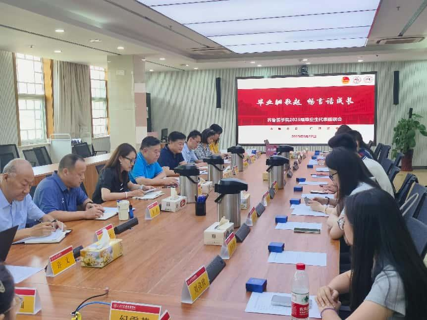 6月12日下午,齐鲁医学院在趵突泉校区召开“毕业骊歌起 畅言话未来”2025届毕业生座谈会。齐鲁医学院党工委副书记、公共卫生学院党委书记赵福昌出席会议,校区职能部门负责人共同参会,师生畅谈成长经历,展望未来征程。