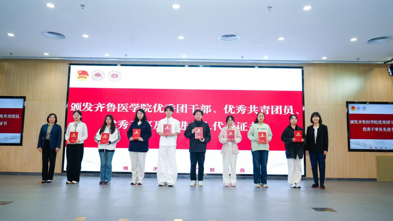 齐鲁医学院团工委前两任书记李玉蓉、孙钰为齐鲁医学院2024-2025优秀团干部、优秀共青团员、优秀干事以及先进个人颁发证书。