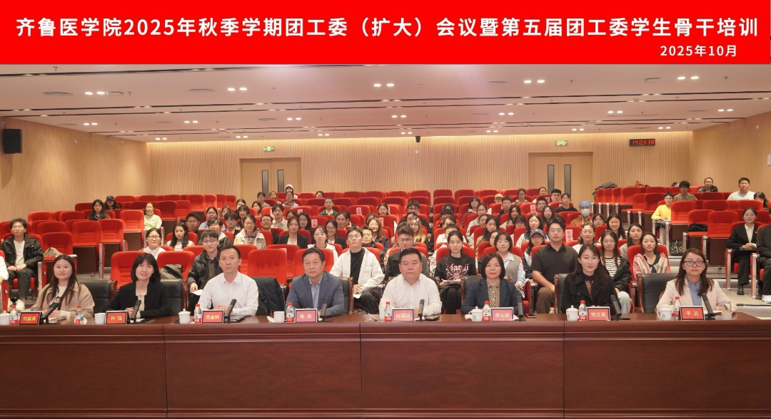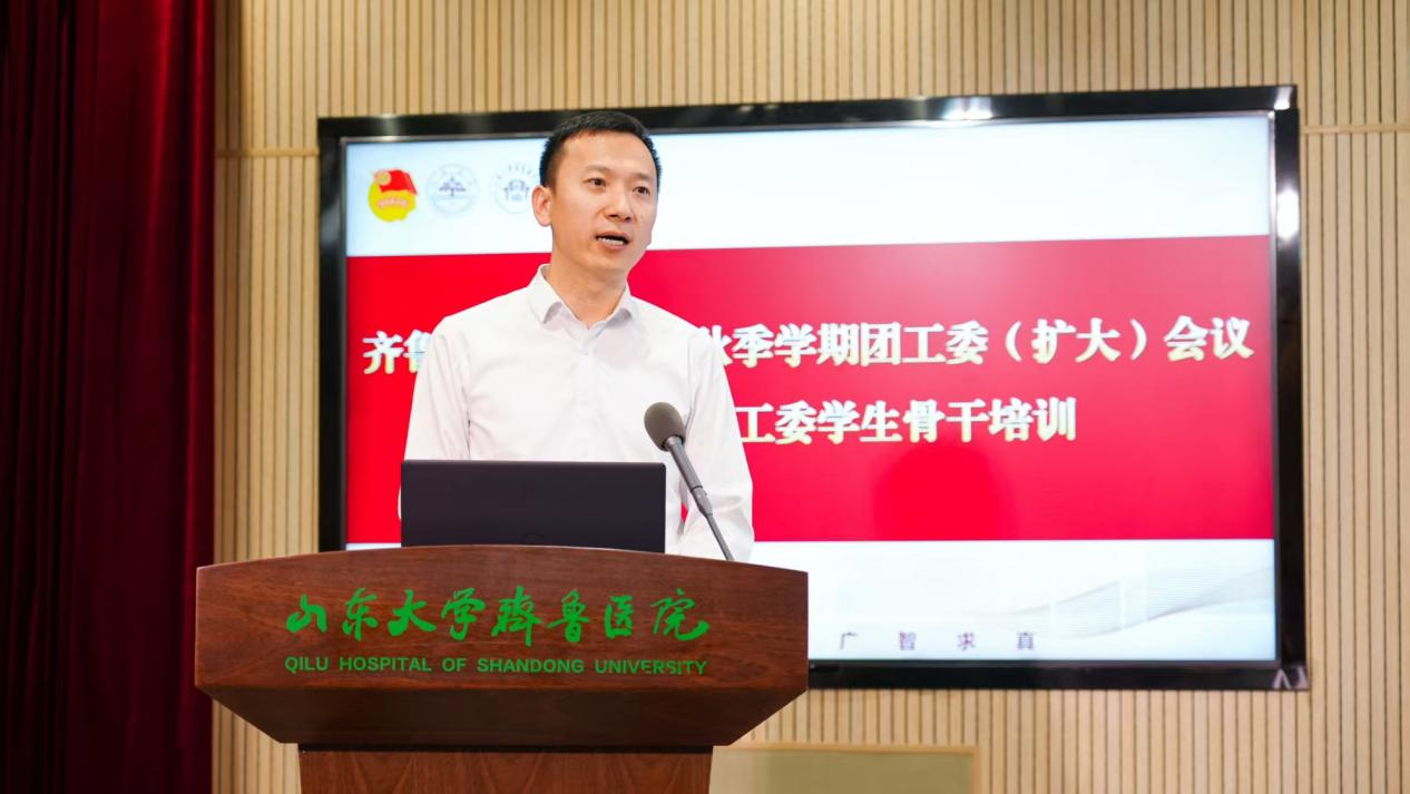 10月11日,齐鲁医学院2025年秋季学期团工委(扩大)会议在齐鲁医院齐鲁楼五层D会议室召开。齐鲁医学院党工委书记、齐鲁医院(第一临床学院)党委书记陈鑫,齐鲁医学院党工委副书记、公共卫生学院党委书记赵福昌,山东大学团委书记范金林,齐鲁医院(第一临床学院)学生工作处处长李玉蓉,齐鲁医学院学生管理办公室副主任孙钰,山东大学研究生团工委书记韩笑晨出席会议。齐鲁医学院学生管理办公室副主任、团工委书记于茜主持会议。