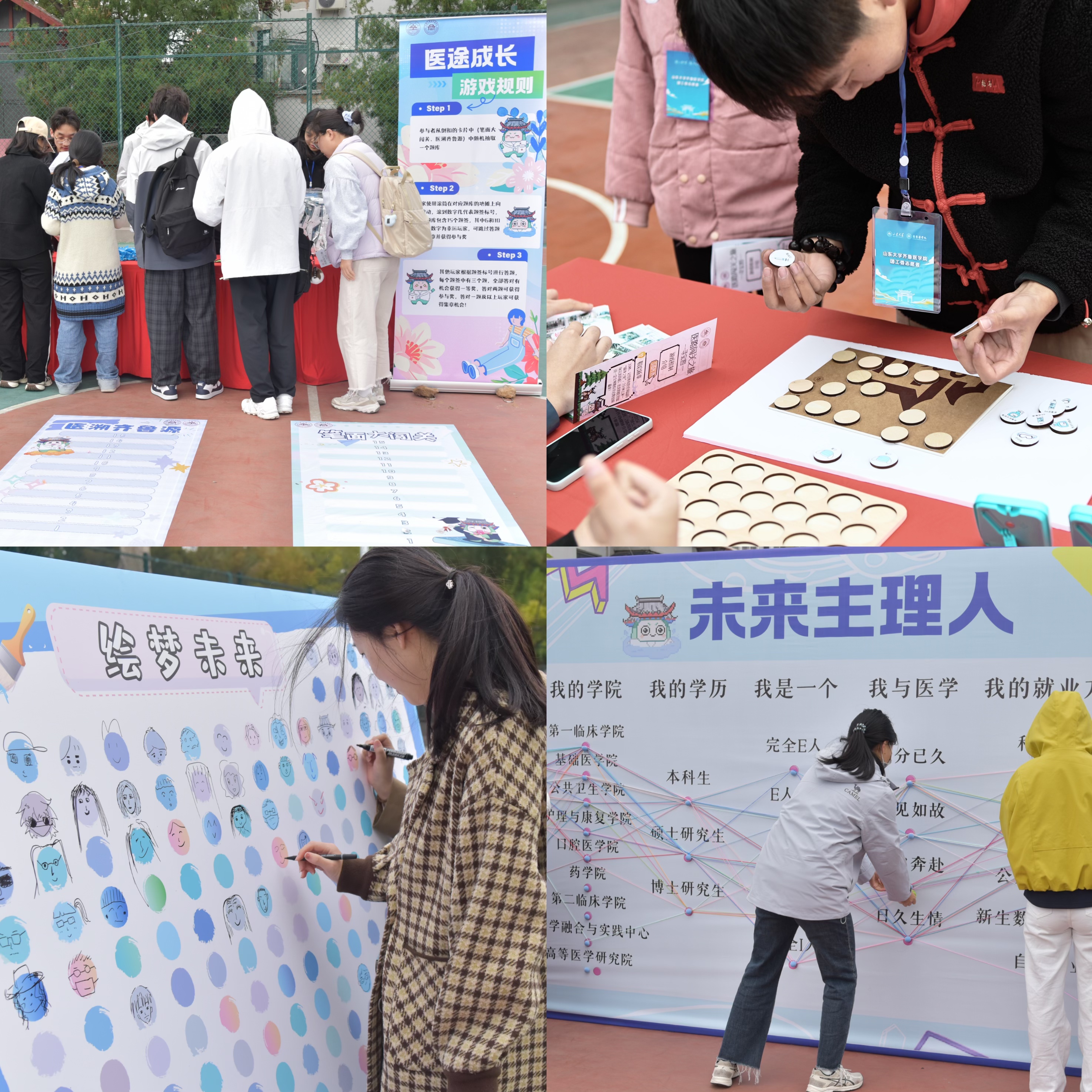 “医路闯关之旅”趣味游园活动将医学素养与职业发展深度融合,打造了一场沉浸式职业探索体验。同学们跟随职涯领航员“齐噜噜”的脚步参加“医途成长”、“职路全中”、“职启新章”、“绘梦未来”、“星光筑梦”、“未来主理人”等闯关互动,精进专业知识技能,明晰职涯规划方向,锤炼未来良医本色。活动还吸引了很多非毕业年级同学参与,现场气氛热烈。