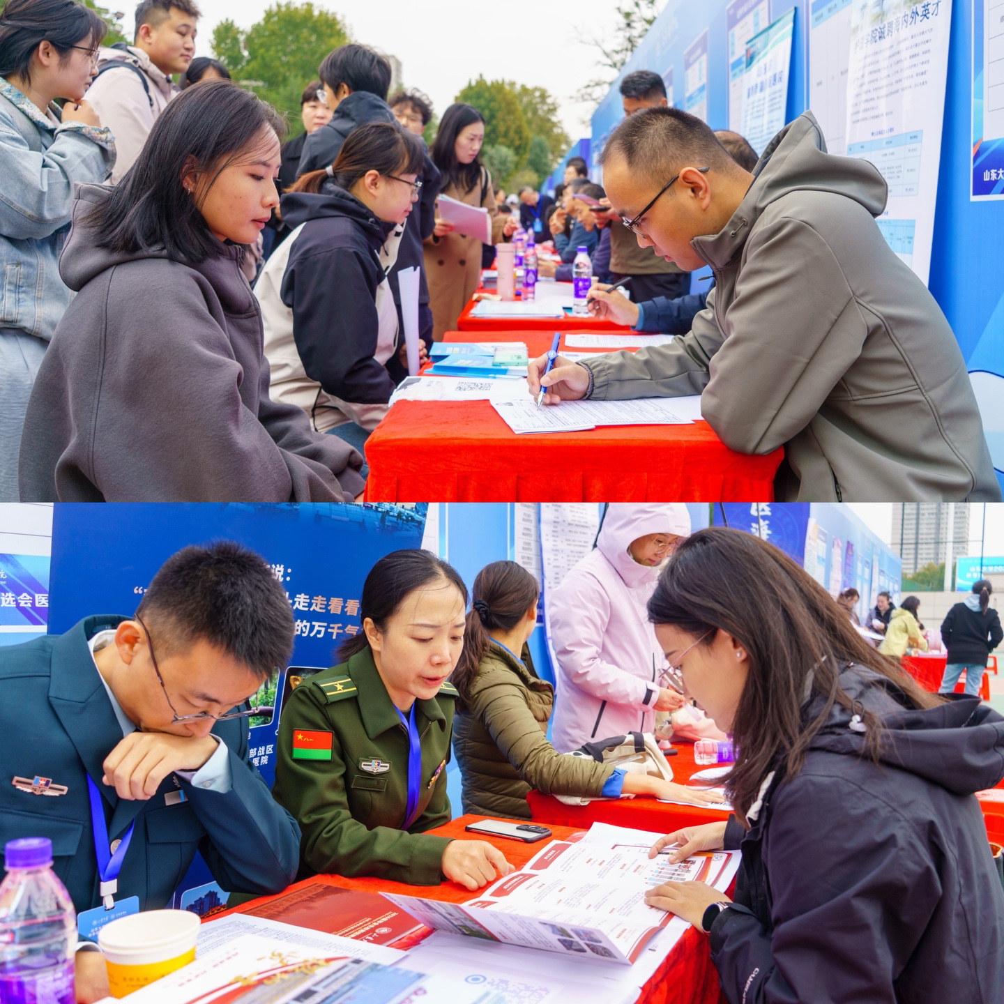 本次活动由山东大学学生就业创业指导中心、齐鲁医学院主办,包括就业双选会、“医路闯关之旅”趣味游园活动、职涯规划指导讲座三个板块。来自全国26个省、自治区、直辖市的近200家医疗卫生机构、教育科研机构、生物医药与医疗器械研发生产企业等用人单位参会,参会单位数量、地域广度创历史新高。其中,天津、厦门、淄博、日照、济南等地市有关部门组织开展“组团式”招才引智活动,海军军医大学附属医院、解放军总医院第二医学中心、大连理工大学、天津医科大学总医院、齐鲁医院等省内外众多知名高校科研院所和医疗机构提供多样化、高质量的就业岗位3000余个,形成多层次、跨领域的人才需求矩阵,现场学生参与人数4000余名。