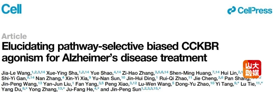 11月20日,山东大学基础医学院/北京大学孙金鹏教授团队联合香港城市大学教授贺菊芳,北京大学教授张勇、副教授铁璐,香港中文大学(深圳)教授杜洋和北京宣武医院唐毅,在《细胞》(Cell)在线发表研究论文“Elucidating pathway-selective biased CCKBR agonism for Alzheimer's disease treatment”。该研究从临床提出问题,通过临床样品检测与动物模型相结合的方法阐释了CCKBR下游不同G蛋白信号通路在AD进程中的功能,并通过解析内源性激动剂CCK8s激活CCKBR不同G蛋白(Gs、Gq、Gi)的分子机制,揭示了CCKBR信号偏向性的分子生物学基础,并以此成功设计出具有治疗潜力的Gq偏向性激动剂3r1,通过动物模型与转录组阐明3r1可通过CCKBR-Gq-Plcb4-Adam10信号轴抑制神经/突触损伤,清除Aβ沉积,为阿尔茨海默病(AD)的精准治疗提供了新策略。