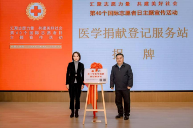 活动中,齐鲁医学院、齐鲁医院(第一临床学院)、济南市红十字会共建的“医学捐献登记服务站”揭牌成立。
