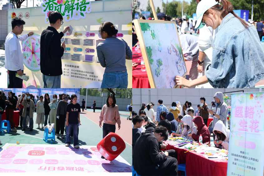 同步开展的“春启医途职引未来”趣味游园活动将医学素养提升与职业发展相结合,打造了一场轻松愉悦的职业探索体验,营造积极温暖的求职氛围。在暖暖春意中,同学们跟随职涯领航员“齐噜噜”的脚步,参与“春风解语”、“职趣春日行”、“医路拾光”、“医路生花”、“好运锦鲤来”、“趣揽春光”等闯关互动,精进专业知识技能,明晰职涯发展方向。活动设计贴合学生兴趣特点,以游戏化、场景化互动创新的形式吸引了很多非毕业年级同学参与,现场气氛热烈。