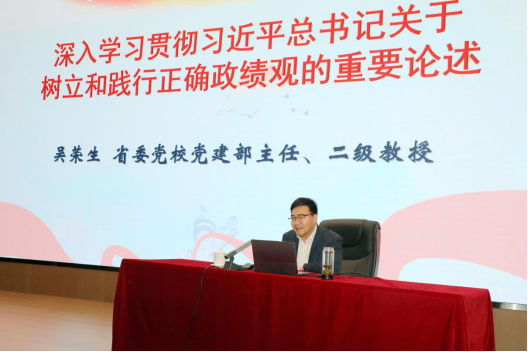 4月23日下午,齐鲁医学院举办2026年第一期广智讲堂—“医路成长”干部赋能系列讲座,邀请中共山东省委党校(山东行政学院)党建部主任、二级教授吴荣生作树立和践行正确政绩观学习教育专题辅导报告。齐鲁医学院党工委书记、齐鲁医院党委书记陈鑫主持活动。