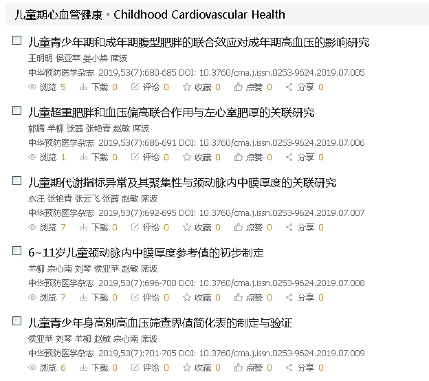 近日,公共卫生学院席波教授团队在《中华预防医学杂志》第53卷第7期发表“儿童期心血管健康”重点号。该期重点号配发席波教授撰写的1篇述评,5名在读硕士研究生(王明明、郭腾、水汪、羊柳、侯亚苹)分别作为第一作者的5篇原创性成果,1名博士研究生(杨丽丽)作为第一作者的1篇综述。该期重点号的研究发现为我国成人慢性病的儿童期预防和控制提供了新的循证依据。