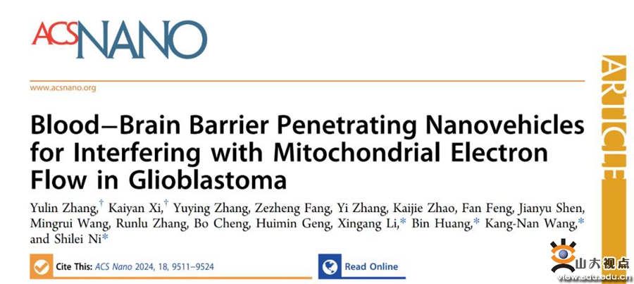 血脑屏障的存在导致药物难以通过静脉注射到达颅内,严重制约了抗胶质瘤药物的开发与应用。倪石磊课题组设计研发了可穿过血脑屏障的“三级靶向”纳米药物ISA,该药物表面包裹过表达P-selectin和ApoE的工程化巨核细胞膜,可实现穿过血脑屏障的同时靶向GBM细胞。此外,在纳米颗粒内部负载的由课题组自主合成的铱化合物(IrPS),能够在细胞内释放并靶向肿瘤细胞线粒体,干扰线粒体电子传递链的正常功能,联合搭载的核酸药物共同诱导肿瘤细胞焦亡,激活抗肿瘤免疫杀伤肿瘤细胞。这种通过工程化生物膜修饰纳米药物的方式实现了GBM治疗的三级靶向(颅脑-肿瘤-线粒体),为颅内药物的穿血脑屏障递送提供了理论支撑和实践检验。研究成果以“Blood–Brain Barrier Penetrating Nanovehicles for Interfering with Mitochondrial Electron Flow in Glioblastoma”为题发表于ACS Nano(中科院1区,IF:17.1)。齐鲁医院神经外科张玉霖、研究生席开颜为本文第一作者,倪石磊教授为该论文最后共同通讯作者,山东大学齐鲁医院为第一作者和通讯作者单位。